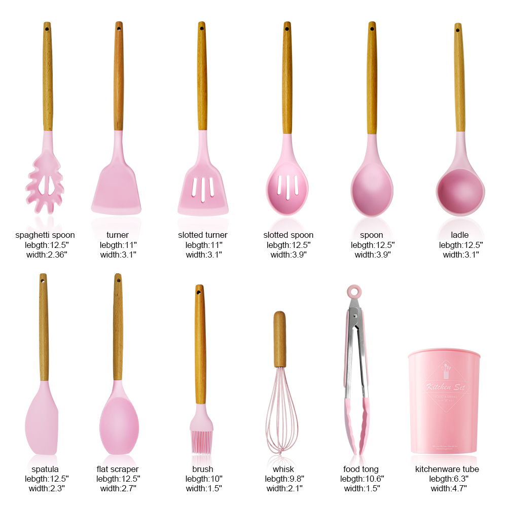 (1*Slotted Turner, 1*Scraper, 1*Spoon, 1*Slotted Spoon, 1*Soup Spoon,1*Pasta Server, 1*Brush, 1*Turner, 1*Spatula, 1*Food Tongs, 1*Egg Beater)