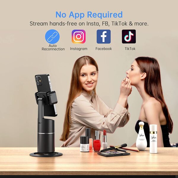 T8 smartphone stand, built-in Intelligent camera and AI technology chip, through AI face tracking. It is a good partner to shoot video, through AI face tracking, 360-degree rotation tracking, smart capture every moving moment. Built-in stabilizer, used on video meet, vlogging shooting, online teaching, video calling, live-streaming etc.